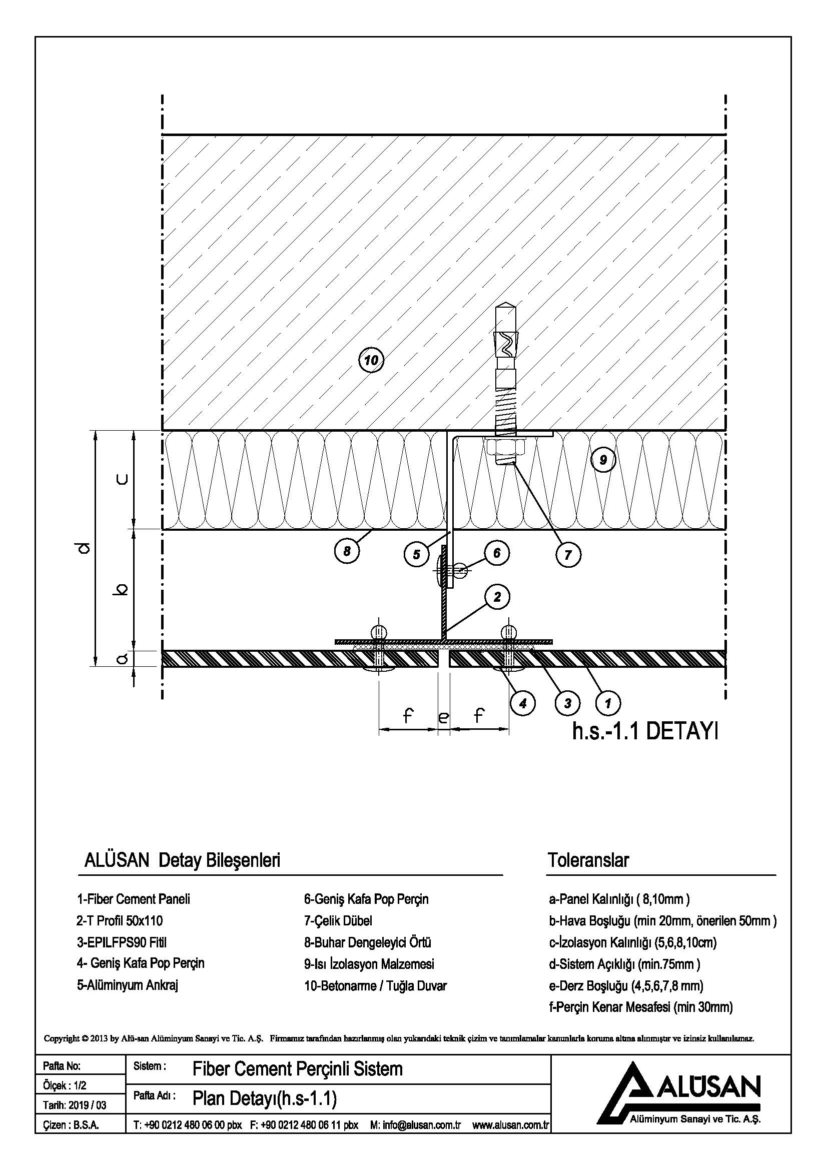 Bina cephesinde Projesine uygun olarak alüminyum ankrajlar ve alüminyum düşey T Profillerden teşkil edilen taşıyıcı alt konstrüksiyon üzerine, Fibercement levhalar, Ral Renginde Boyalı özel perçinler vasıtası ile monte edilir. Bu Sistemde Derzler Açıktır.
