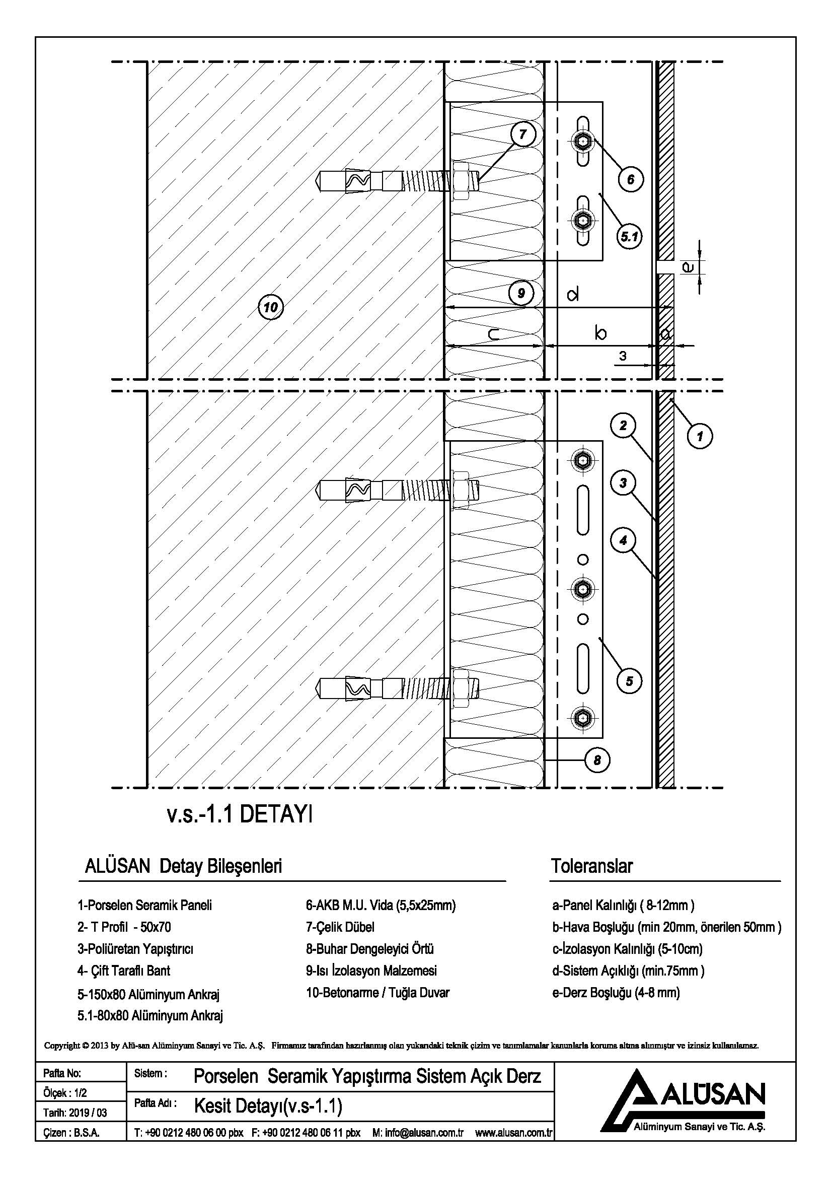 Seramikler, alüminyum taşıyıcı profile yardımcı geçici bant ve poliüretan esaslı yüksek mukavemete sahip -40° ile +100° de elastikiyetini kaybetmeyen bir malzeme ile monte edilir. En ekonomik porselen seramik uygulama metodudur ve her türlü ebatta uygulanabilir. İsteğe göre açık derzli ya da kapalı derzli olarak monte edilebilir. Kapalı derzli sistemde, Açık derzli uygulamaya ek olarak kaplama malzemesinin düşey ve yatay derzlerine istenilen RAL renginde özel tip alüminyum profiller monte edilerek malzemenin derzleri arasındaki boşluklar kapatılmış olur.